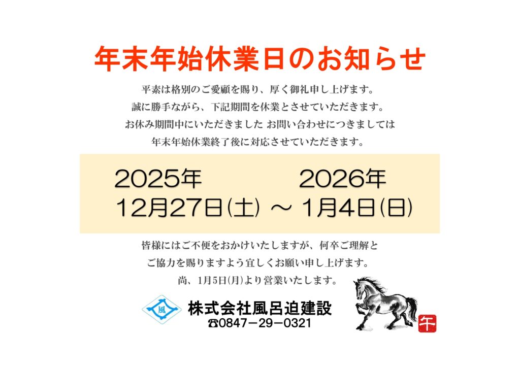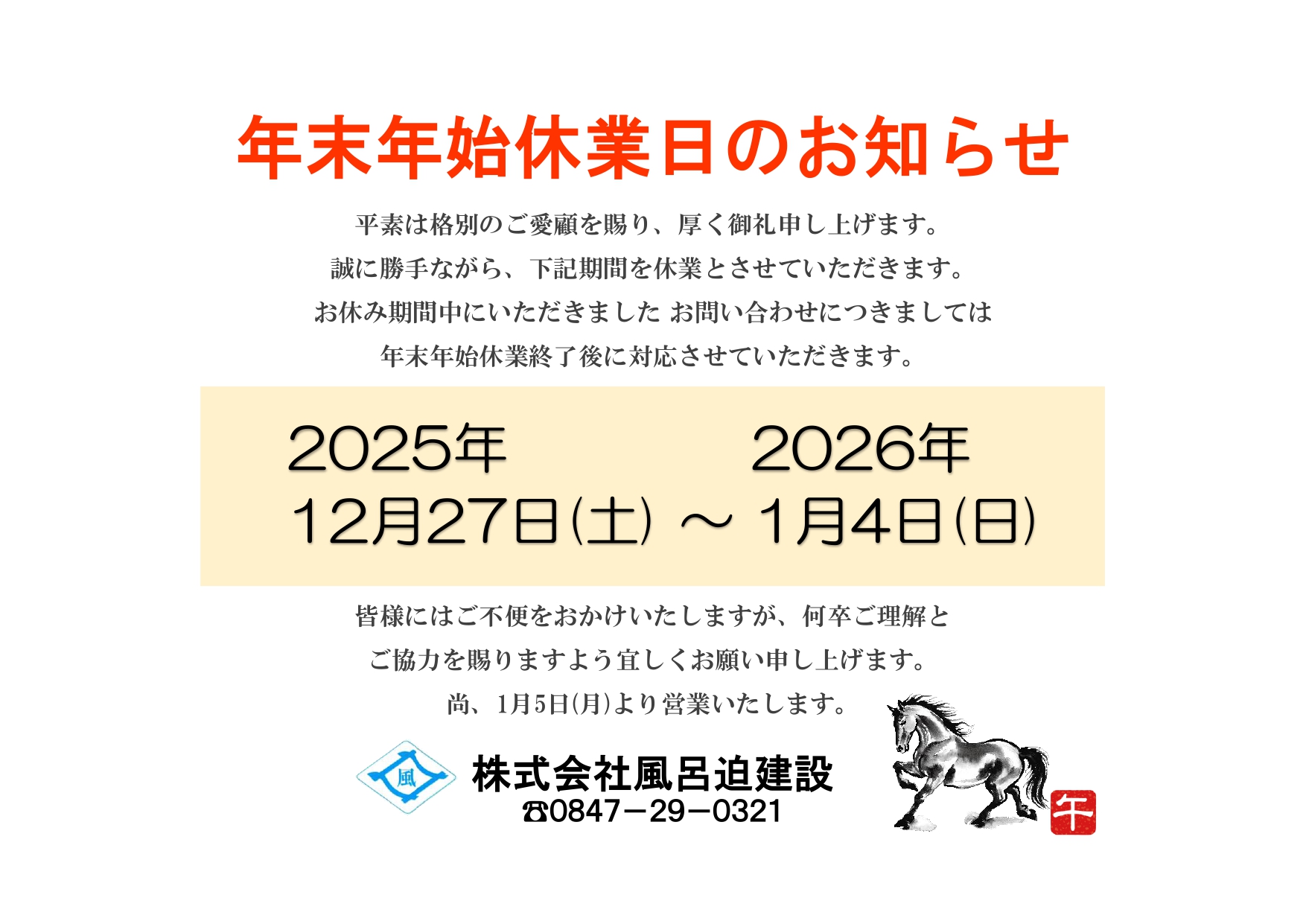 誠に勝手ながら、下記期間を休業とさせていただきます。